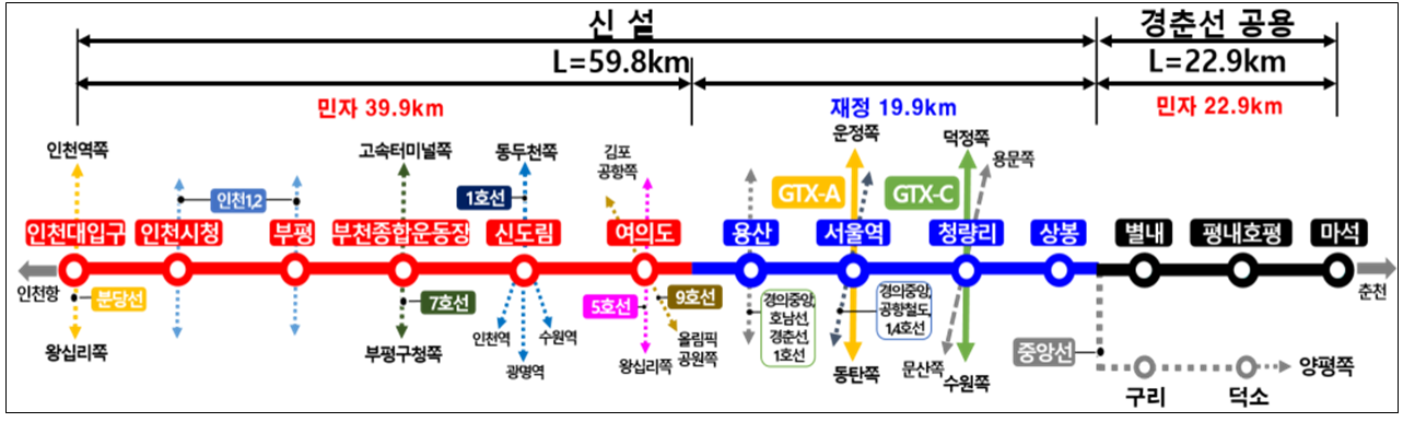 - 재정사업: 용산~상봉(20km, 정부 예산 투입)